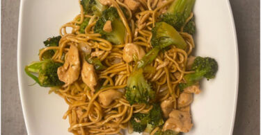 Einfache Asiatische Nudeln mit Hühnchen und Brokkoli