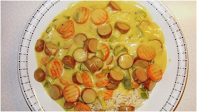 Senfgeschnetzeltes mit Würstchen
